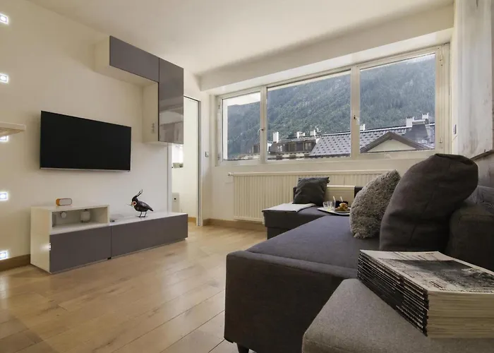 Das 1-Zimmer-Appartement Le Concordia 4 Happy Rentals Chamonix liegt ungefähr 6 Gehminuten vom Musée des Cristaux entfernt und bietet einen Ausblick auf die Berge. Das Apartment bietet auch öffentliche Parkplätze in der Nähe.